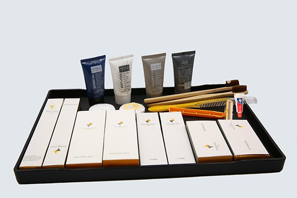Tùy vào quy mô khách sạn mà bộ Amenities sẽ có mẫu mã và tiêu chuẩn khác nhau. Thông thường thì bộ Amenities gồm các sản phẩm chỉ dùng 1 lần duy nhất như bàn chải, kem đánh răng, lược, sữa tắm, dầu gội, dao cạo râu, xà phòng…