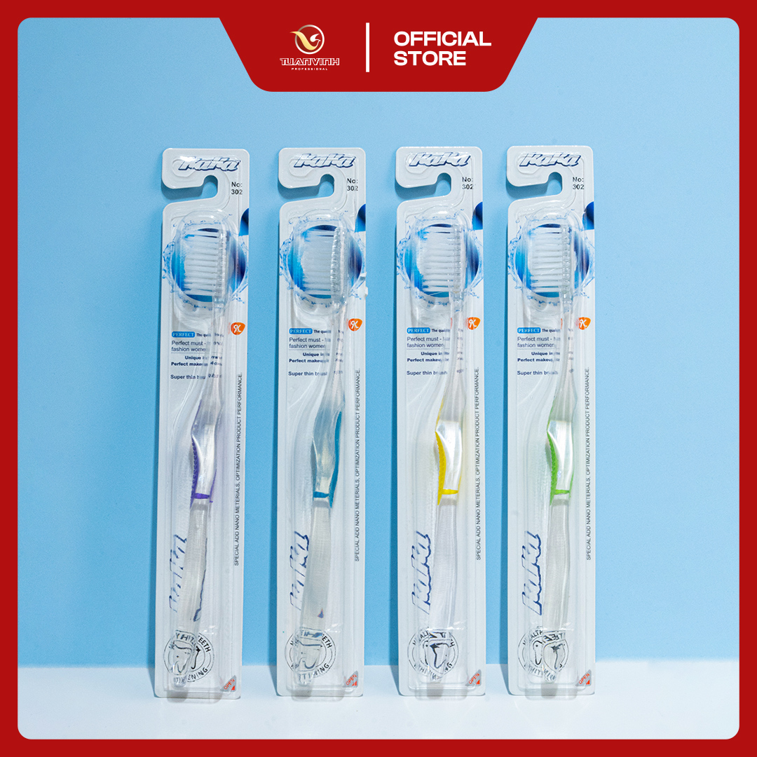 Bàn chải đánh răng KAKA Ultra Soft No.302 sở hữu lông PBT siêu mềm 0.01 mm, làm sạch sâu đến từng kẽ răng mà vẫn dịu nhẹ với nướu. Thiết kế nhỏ gọn, cầm chắc tay, cán nhựa GPPS an toàn, không BPA. Phù hợp cho siêu thị, đại lý mỹ phẩm và hàng tạp hoá nhắm đến người dùng ưa chuộng sự tinh tế và hiệu quả vượt trội.