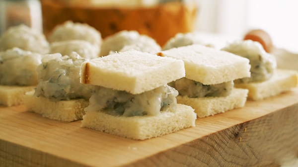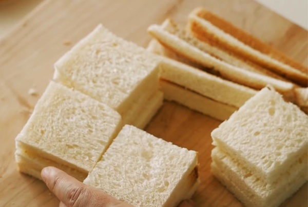 - Bánh mì sandwich bỏ rìa, cắt miếng vuông nhỏ.