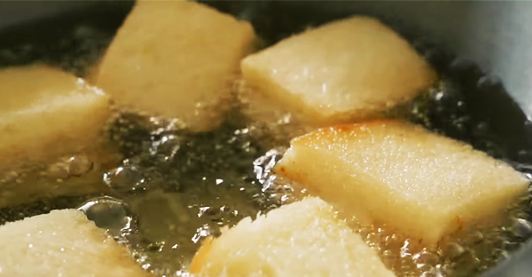 - Chiên vàng giòn các mặt thì vớt ra để ráo dầu, thực hiện đến khi hết nguyên liệu.