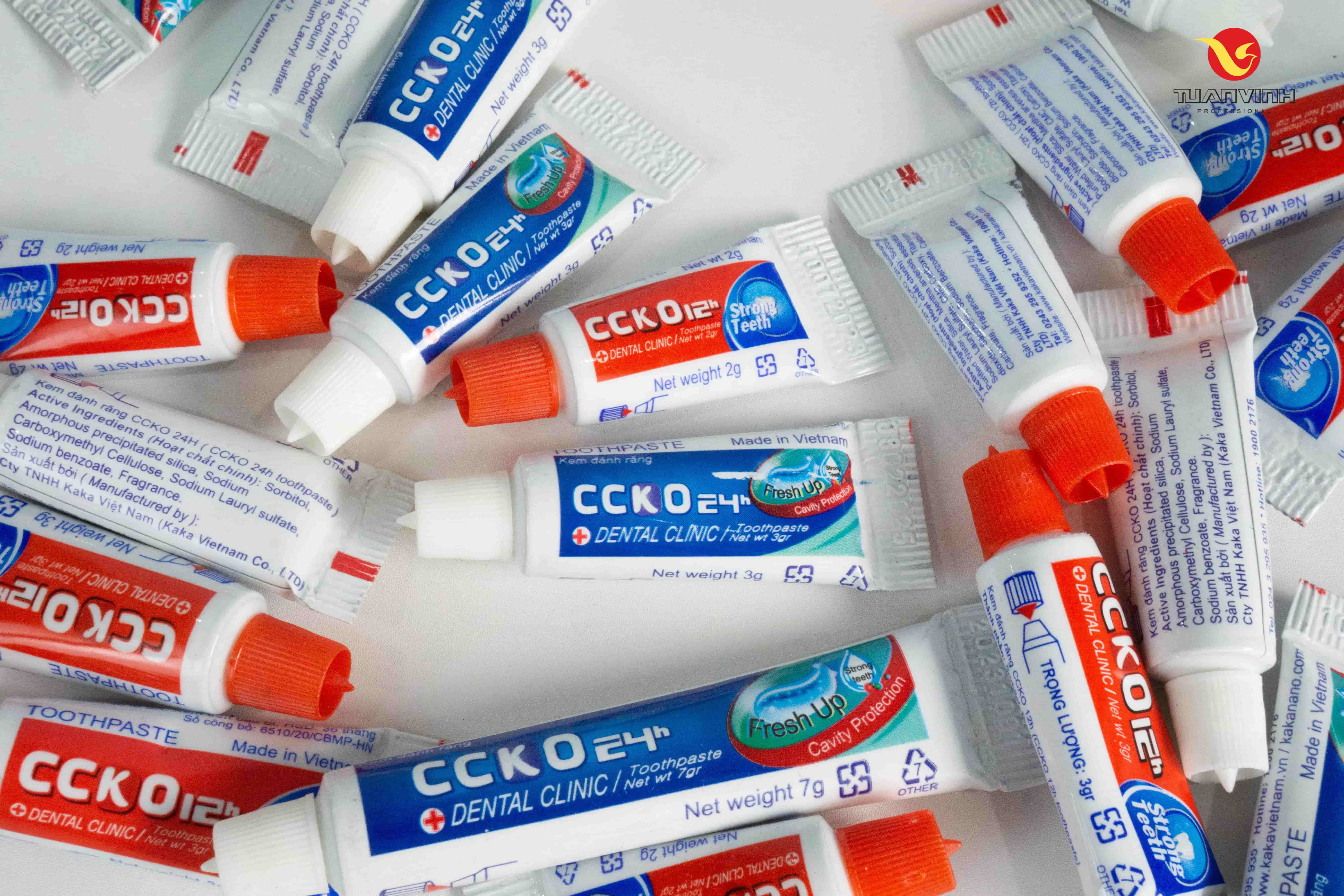Chúng tôi cũng là đơn vị tiên phong tại Việt Nam trong việc sản xuất kem đánh răng tuýp nhỏ theo công nghệ tự động 100%. Với hai dòng CCKO 12h & CCKO 24h, công ty đạt sản lượng lên đến 14 triệu sản phẩm/tháng, phục vụ tối ưu cho thị trường khách sạn và tiêu dùng cá nhân.