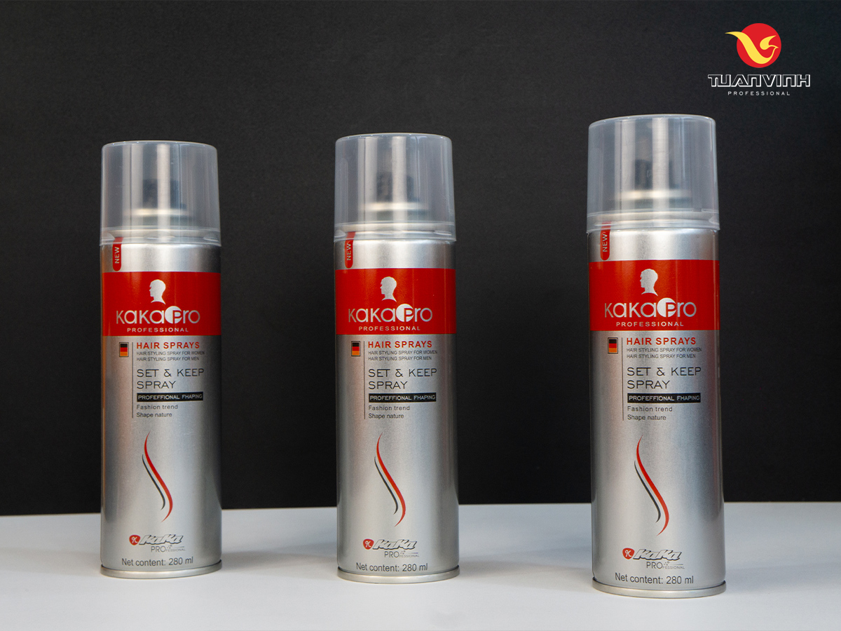 - Gôm xịt KaKaPro: Xịt đều để khóa form tóc, hoàn thiện kiểu